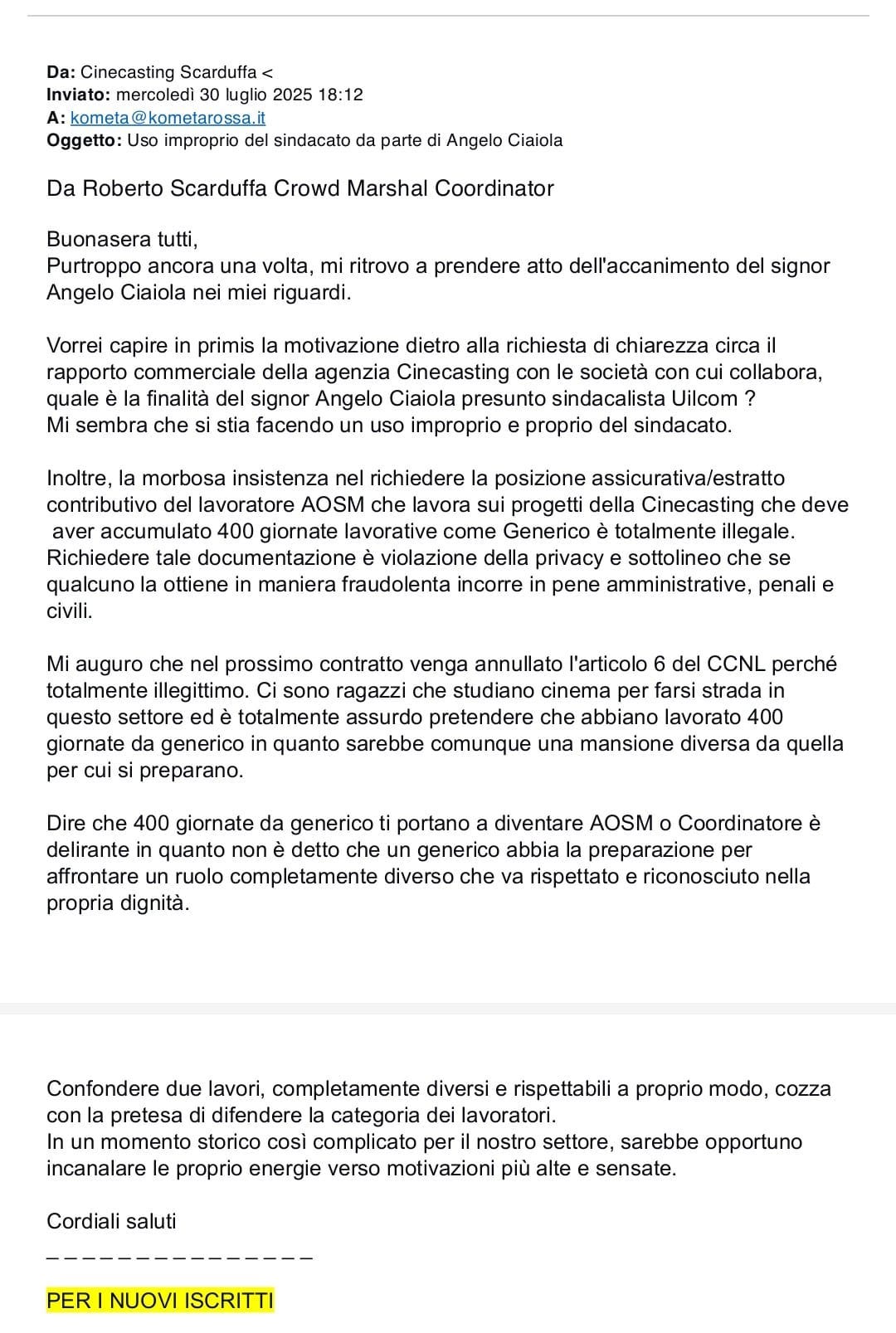 su richiesta del sindacato Uilcom-UIL vi inoltriamo due comunicazioni, in ordine cronologico. Per darvi subito un’idea del contesto: